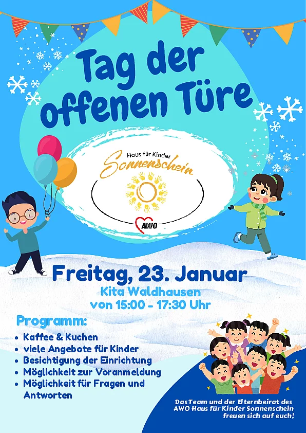 Außerdem findet am 23.01.2026, von 15:00 bis 17:30 Uhr, in unserer Einrichtung ein Tag der offenen Türe statt.